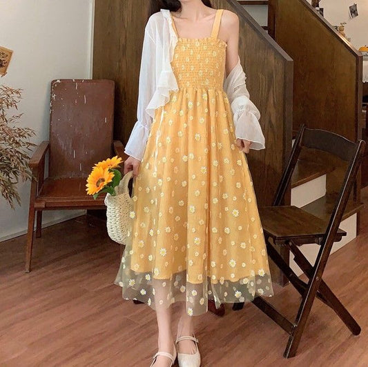 Sheer Shirt / Spaghetti Strap Mesh Overlay Dress