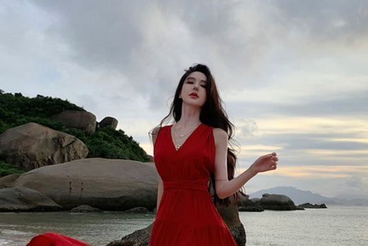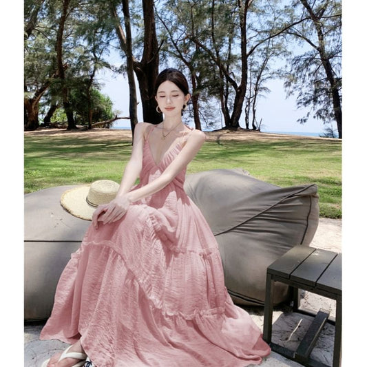 Sleeveless V-Neck Plain Open Back Maxi A-Line Dress
