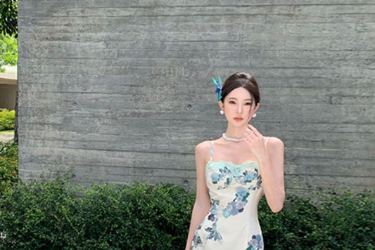 Spaghetti Strap Floral Lace Trim Midi Sheath Dress
