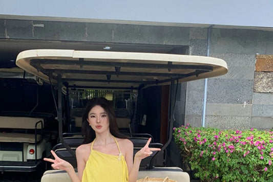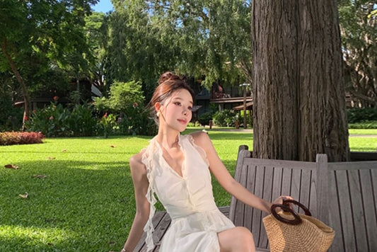 Halter Plain Ruffle Trim Open Back Slit Maxi A-Line Dress