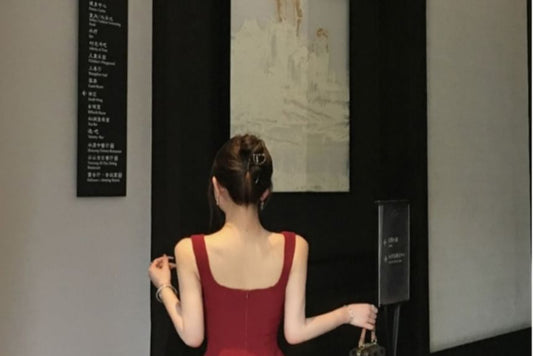 Sleeveless Square Neck Plain A-Line Midi Dress