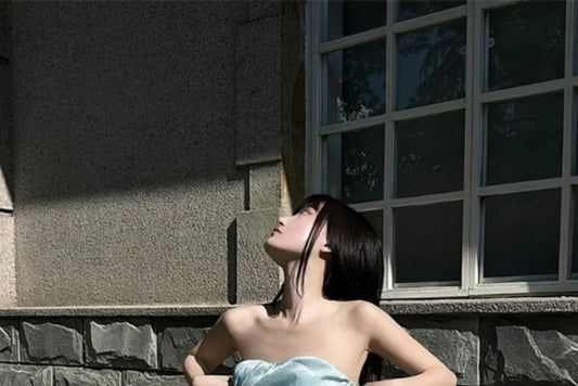 Set: Plain Ruched Crop Tube Top + Mid Rise Plain Maxi A-Line Skirt