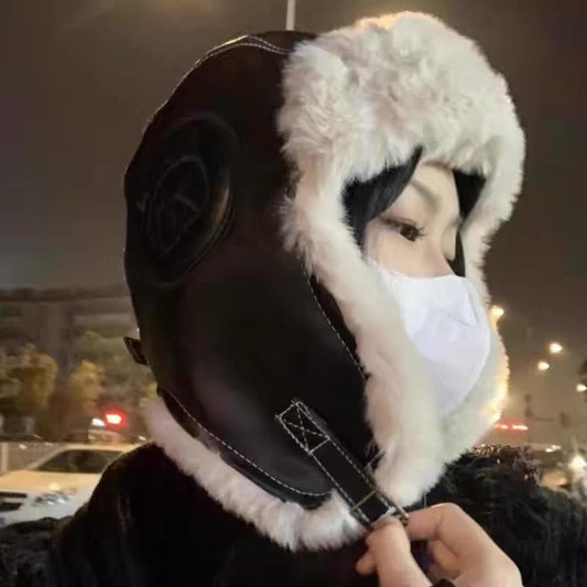 Trapper Fluffy Hat Faux / Plain Leather Panel