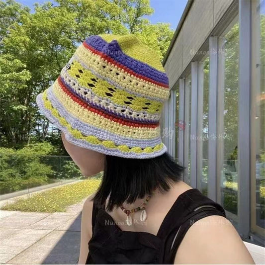 Hat Striped Bucket Knit
