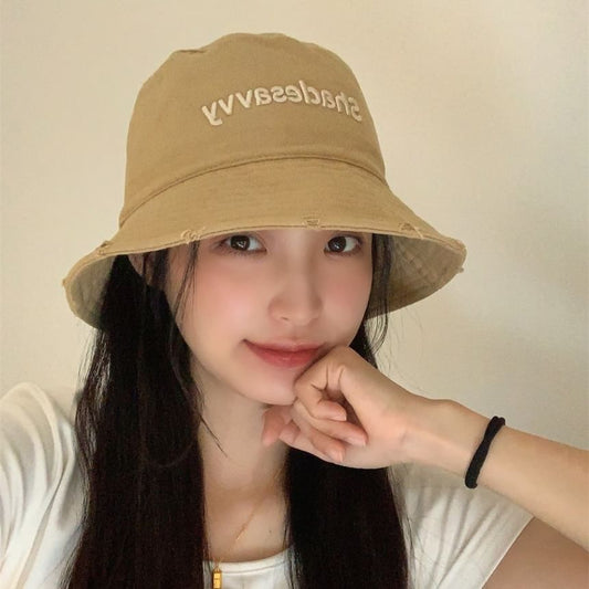 Bucket Hat Lettering Embroidered Distressed