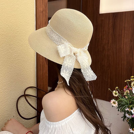 Applique Lettering Trim Contrast Knit Hat Bucket