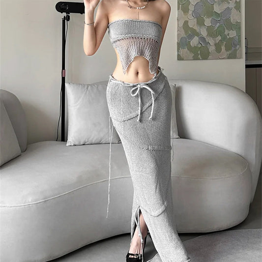 Elegant Knit Crochet Maxi Skirt