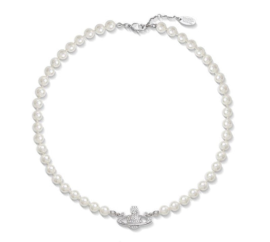 Chic Enamel Tulip Pearl Chain Choker Necklace Bracelet Set