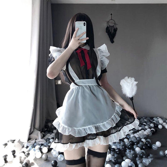 Sexy Bow Knot Housemaid Uniform Seven-Piece Set Lingerie