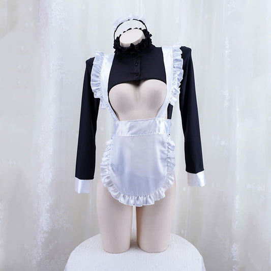 Cute Maid Hollow Out Sexy Jumpsuit Lingerie Set