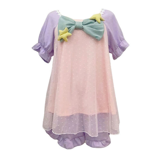 Square Collar Bowknot Mesh Mermaid Nightgown Pajamas Set