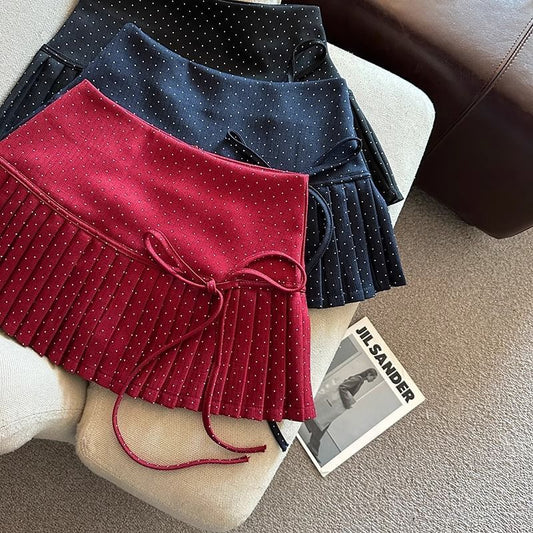 Dotted Skirt Pleated Rise A-Line High Mini