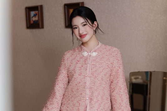 Set: Button-Up Tweed Crop Jacket + Mini Skirt