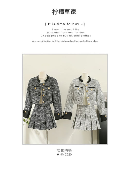 Set: Plain Tweed Button Jacket + High Rise Mini A-Line Skirt