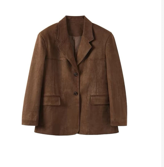 Lapel Collar Plain Single Breasted Blazer / High Waist Plaid Maxi A-Line Skirt / Long-Sleeve Plain Tee
