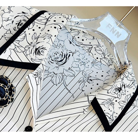 Flower Stripe Shirt Butterfly Print Skirt Set