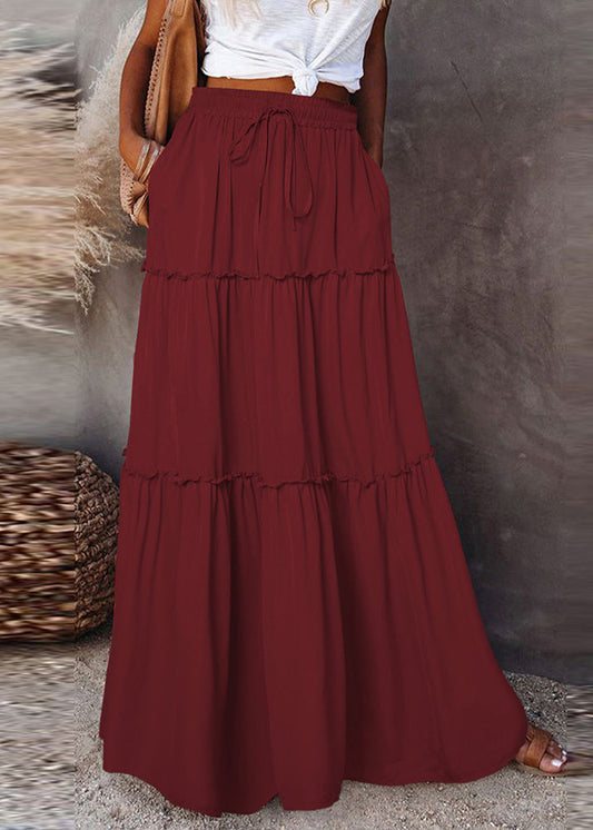 Tiered Plain Midi Waist A-Line Elastic Velvet Skirt