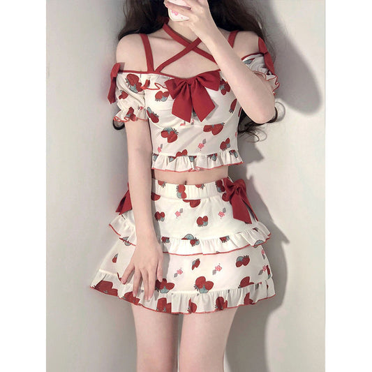 Strawberry Bow Skirt Suit