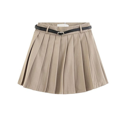 High Waist Plain Pleated Mini A-Line Skirt EE3