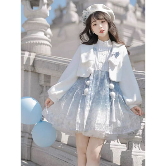Kawaii Cross Print Ruffled Maid Lolita Dress Set