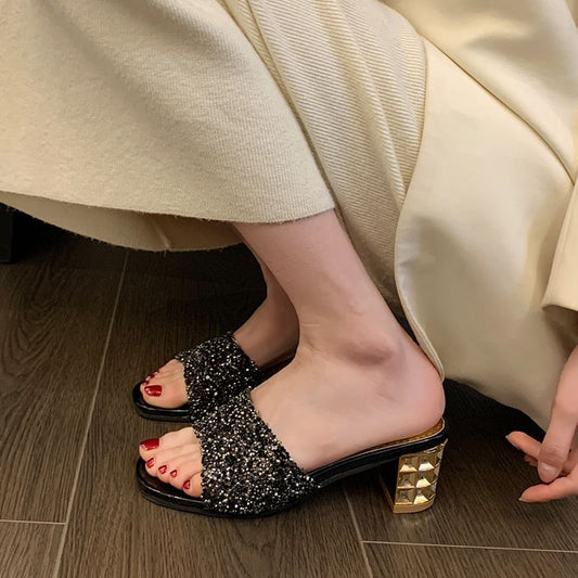 Stiletto Slingback Sandals Pointed Heel Rhinestone Toe