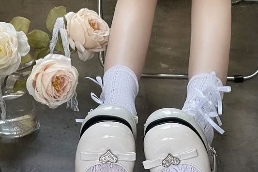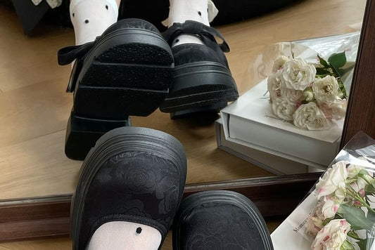 Platform Floral Jacquard Bow Accent Mary Jane Shoes