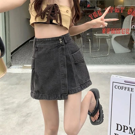 Hem Waist High Fringed Pencil Mini Denim Skirt