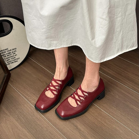 Plain Pumps Toe Heel Lace-Up Chunky Square Jane Mary