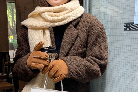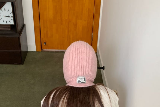 Balaclava Knit Applique Plain Ribbed Lace-Up