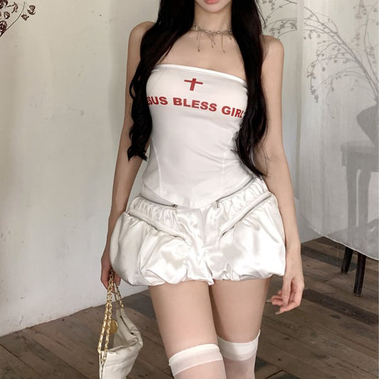 Bow Cami Top / Elastic Waist Plain Wide Leg Pants