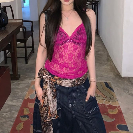 Dotted High Plaid Frill Balloon Rise Top Skirt A-Line Mini Cami /