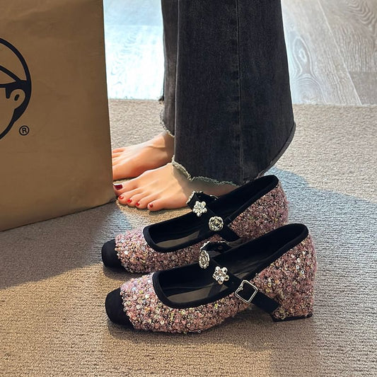 Accent Pumps Heel Metal Jane Mary Sequin Chunky