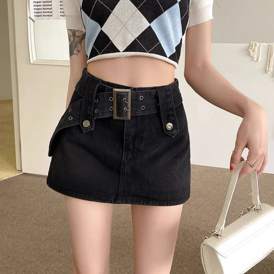 Mini Skirt A-Line Belt + Waist Set: Plain High