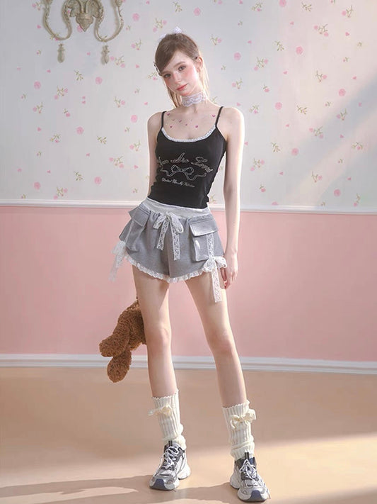 Gothic Black and Red Lace Hem Tiered High-Low Skirt