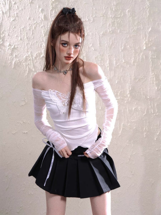 Black Kitty Spider Cross Skeleton Appliques Oversized Top