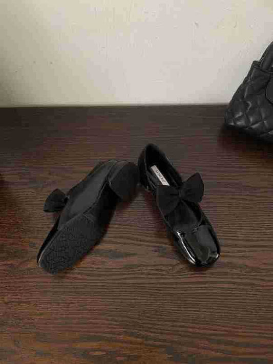 Chunky Heel Bow Accent Patent Leather Mary Jane Pumps