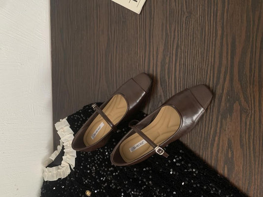 Chunky Heel Plain Faux Leather Mary Jane Shoes