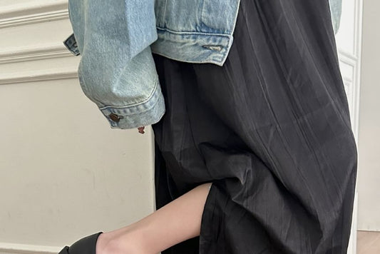 Lapel Collar Plain Single Breasted Blazer / Mid Waist Plain Mini A-Line Skirt / Long-Sleeve Scoop Neck Plain Tee