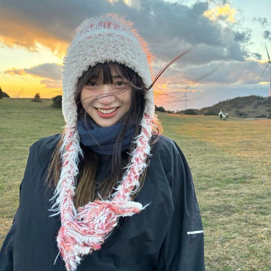 Striped Frayed Beanie