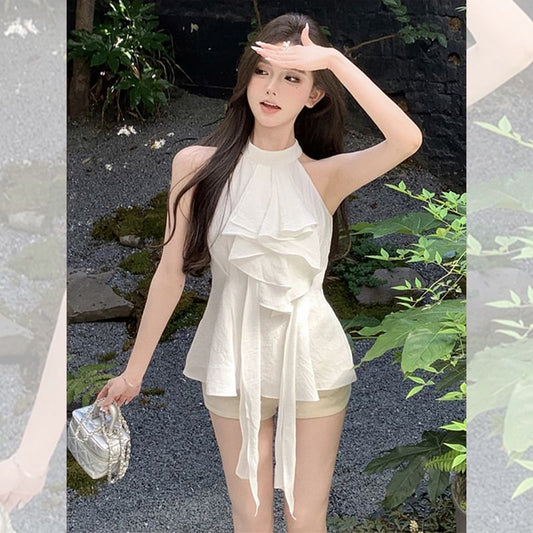 Puff-Sleeve Plain Shirt / Mini Dungaree Dress