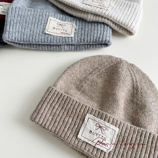 Ribbon Faux Pearl Chenille Applique Knit Beanie