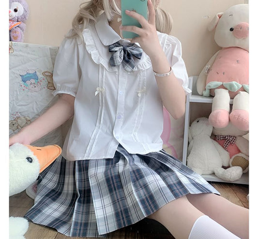 Short-Sleeve Shirt / Bear Print Jumper Shorts