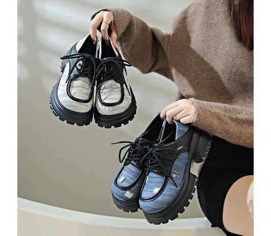 Contrast Trim Lace-Up Platform Chunky Heel Derby Shoes