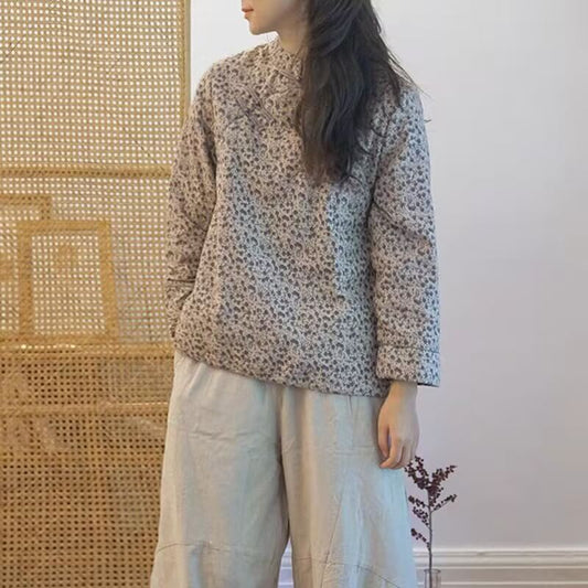 Long Sleeve Band Collar Floral Print Loose Hanfu Blouse