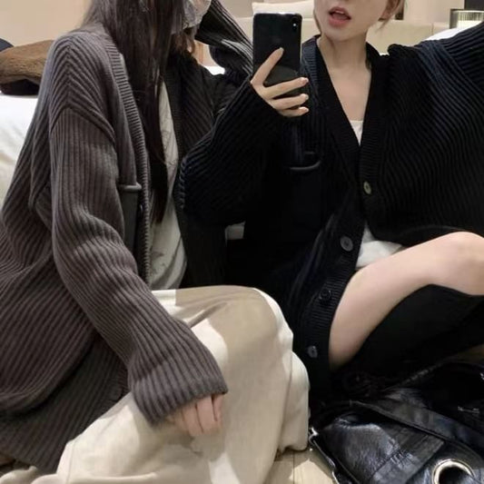 Oversized Cuff-Detail V-Neck Cardigan in 5 Colors