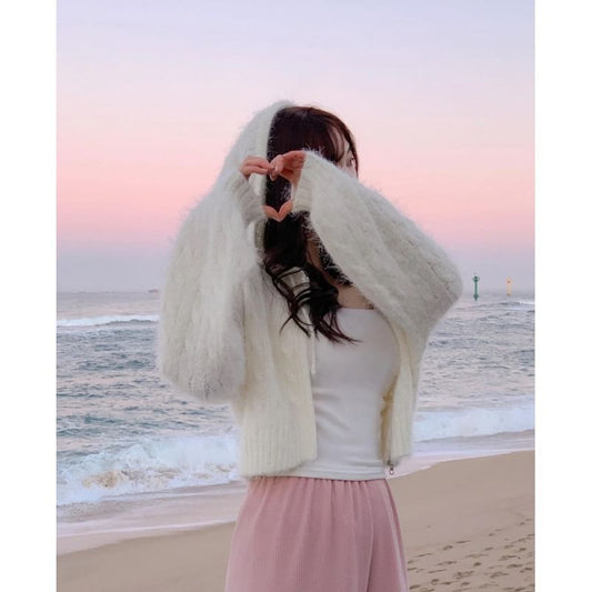 Cropped Cable-Knit Hooded Zipper Cardigan in 6 Colors
