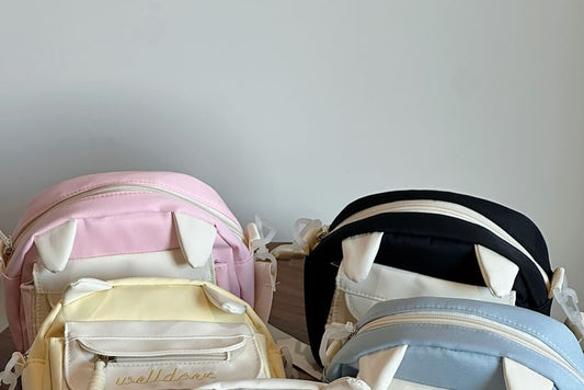 Lettering Two Tone Crossbody Bag / Bag Charm / Set