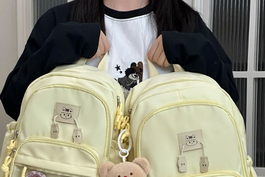 Lettering Print Laptop Backpack / Bag Charm / Set