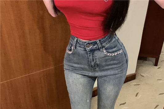 Washed Bootcut Rise Mid Trim Jeans Rhinestone