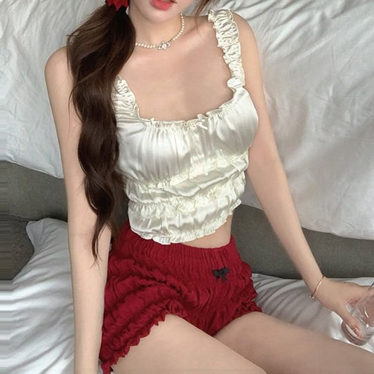Camisole / Slim Floral Fit Plain Bootcut Lace Button Top Pants